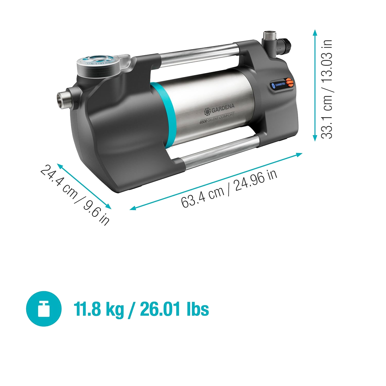 Gardena Gartenpumpe SilentComfort 9059-20, 1x Anschlussadapter für Gartenschlauch, 1x Tragegriff für einfachen Transport, 1x Bedienungsanleitung