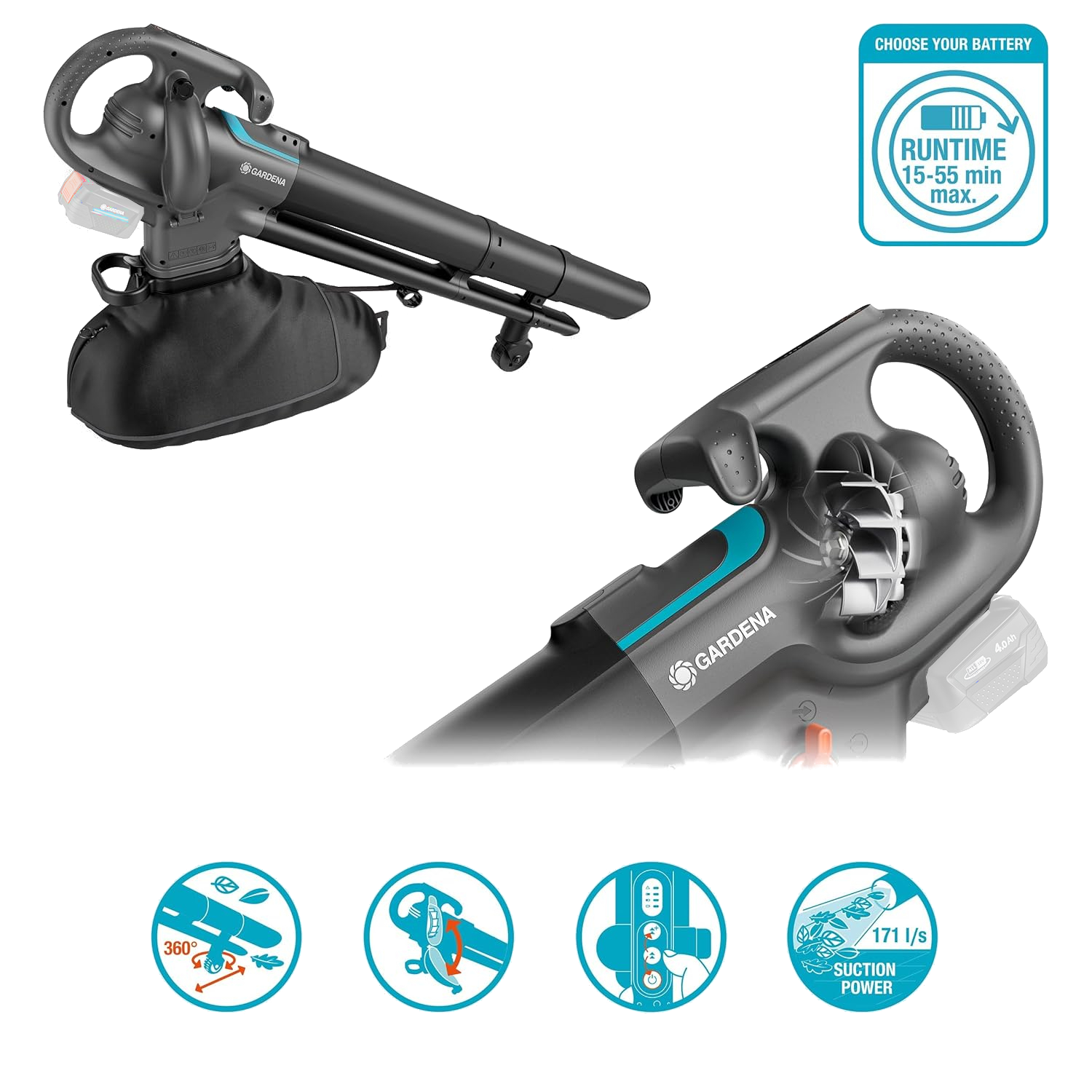 - 3-in-1-Funktion: Blasen, Saugen und Häckseln – alles in einem kompakten Gerät.