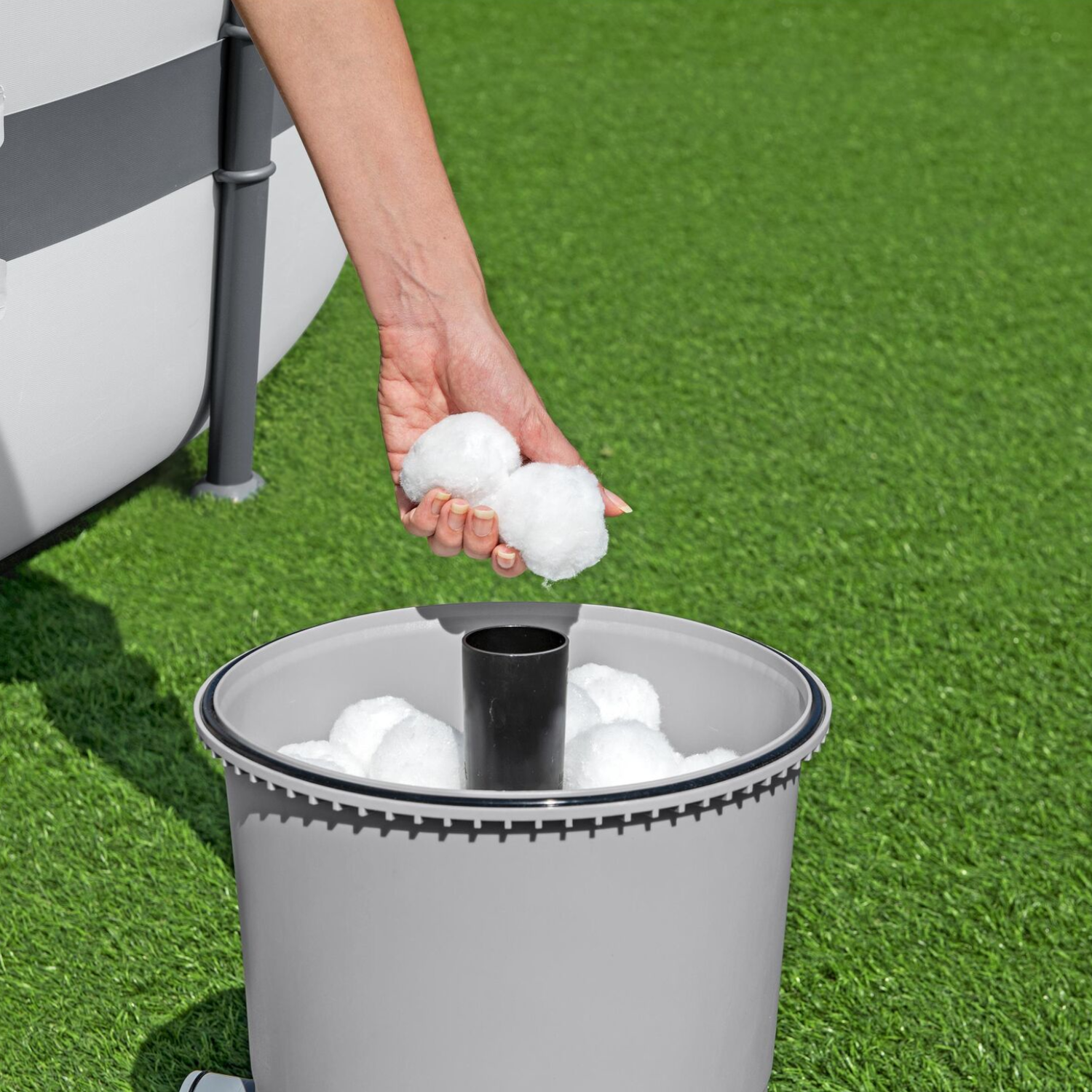 - Betrieb sowohl mit Filtersand als auch mit Polysphere Filterbällen möglich (nicht im Lieferumfang enthalten)