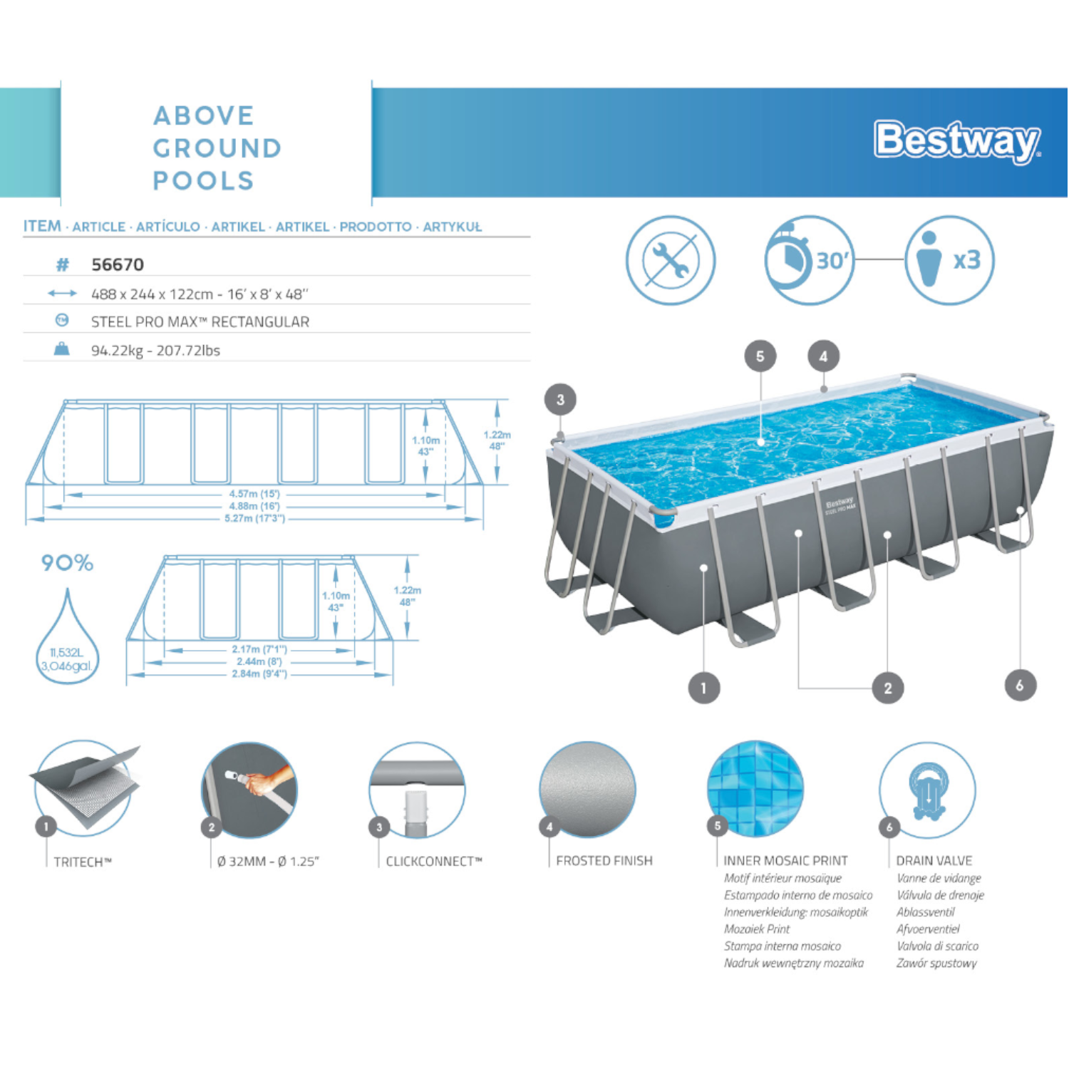 Bestway 56670 Power Steel Rectangular Frame Pool Set 488x244x122cm
