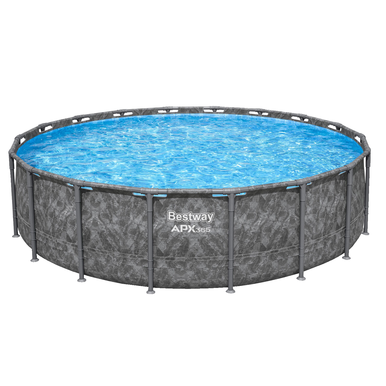 Bestway® APX365™ Frame Pool (Ø 549 × 132 cm), Sandfilteranlage, Sicherheitsleiter (132 cm), Abdeckplane, Reparaturflicken, Integriertes Ablassventil mit Gartenschlauchadapter