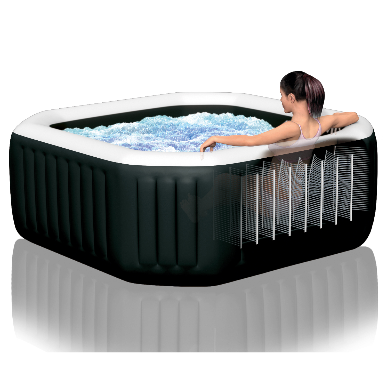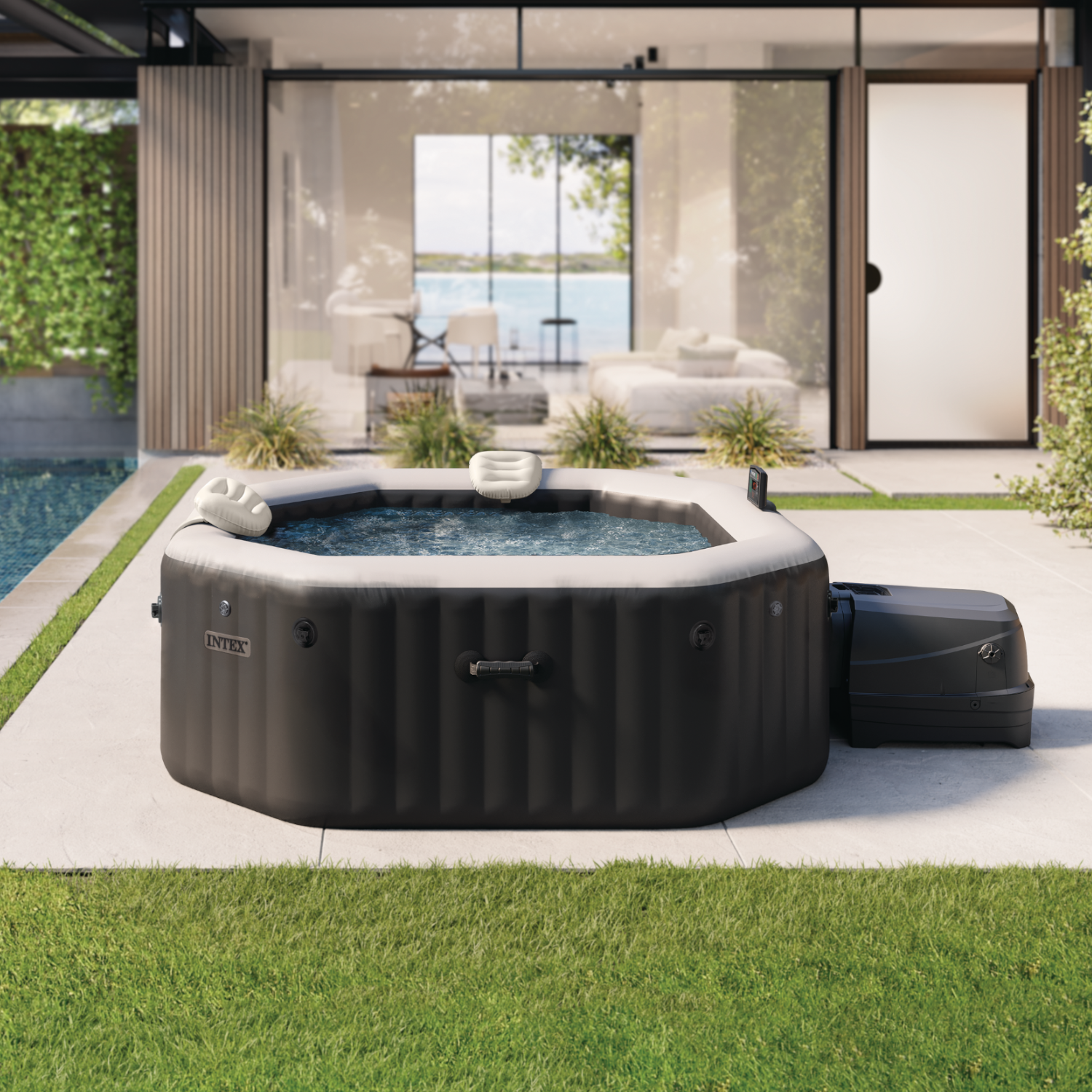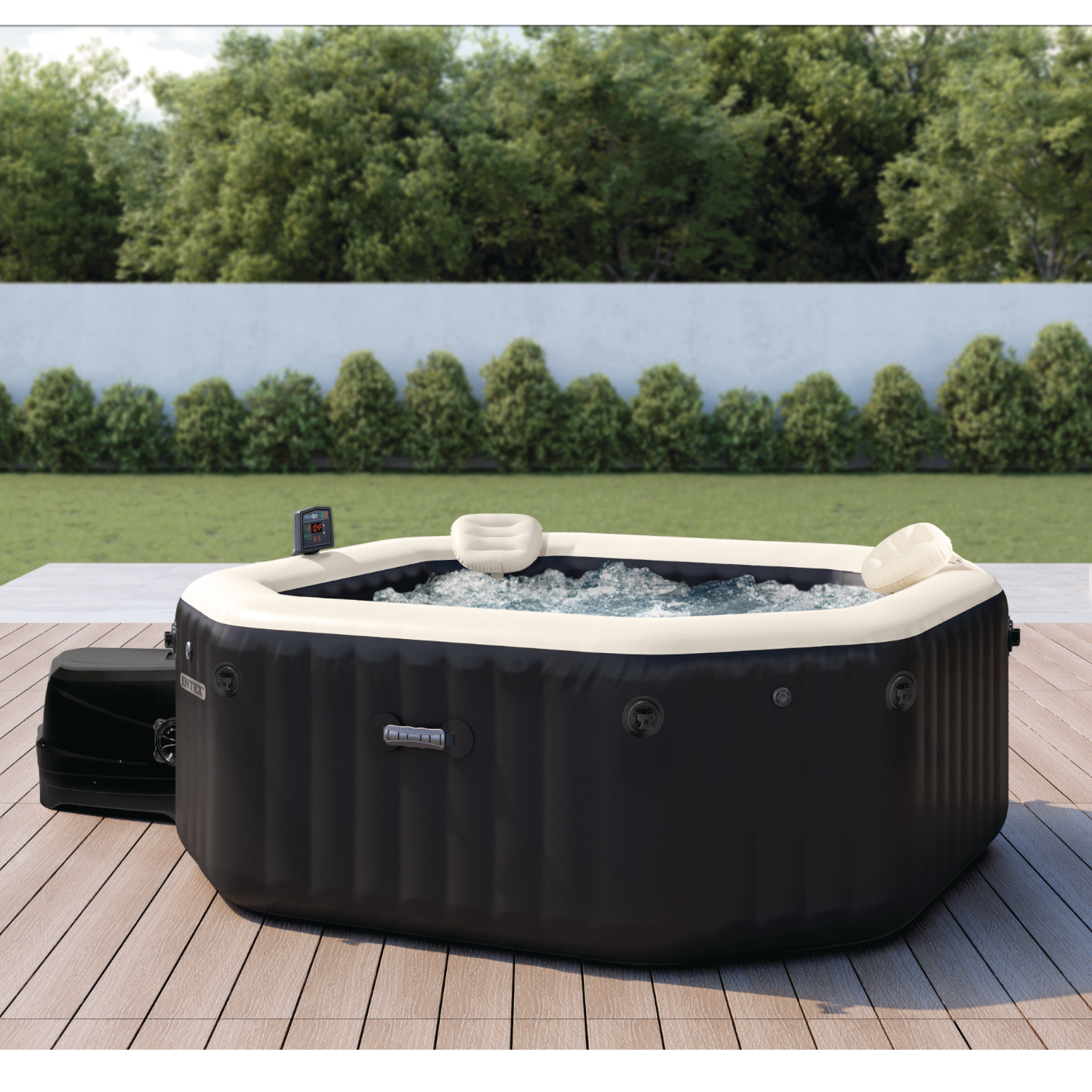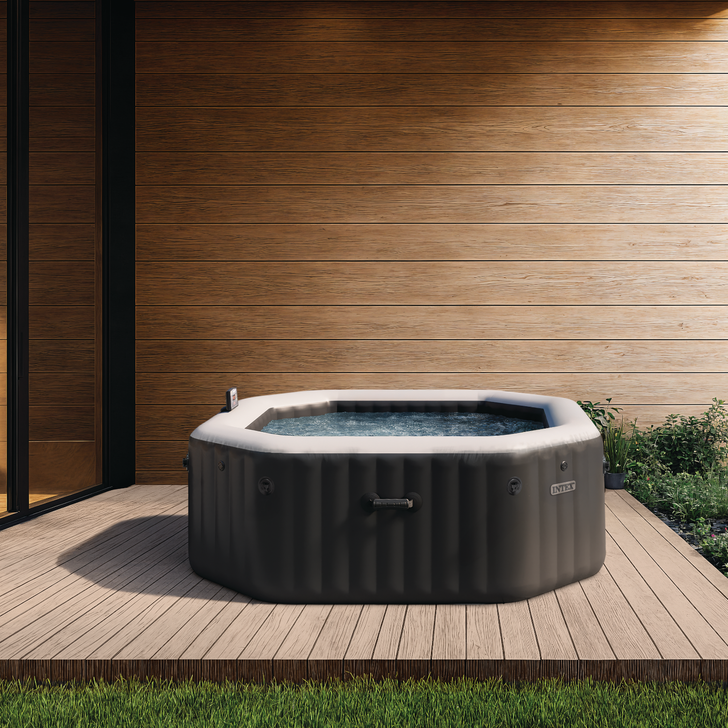 Mit dem Jet & Bubble Deluxe™ von Intex holen Sie sich eine Wellness-Oase mit hochwertiger Ausstattung und hoher Stabilität nach Hause, die Platz für bis zu 4 Personen bietet.